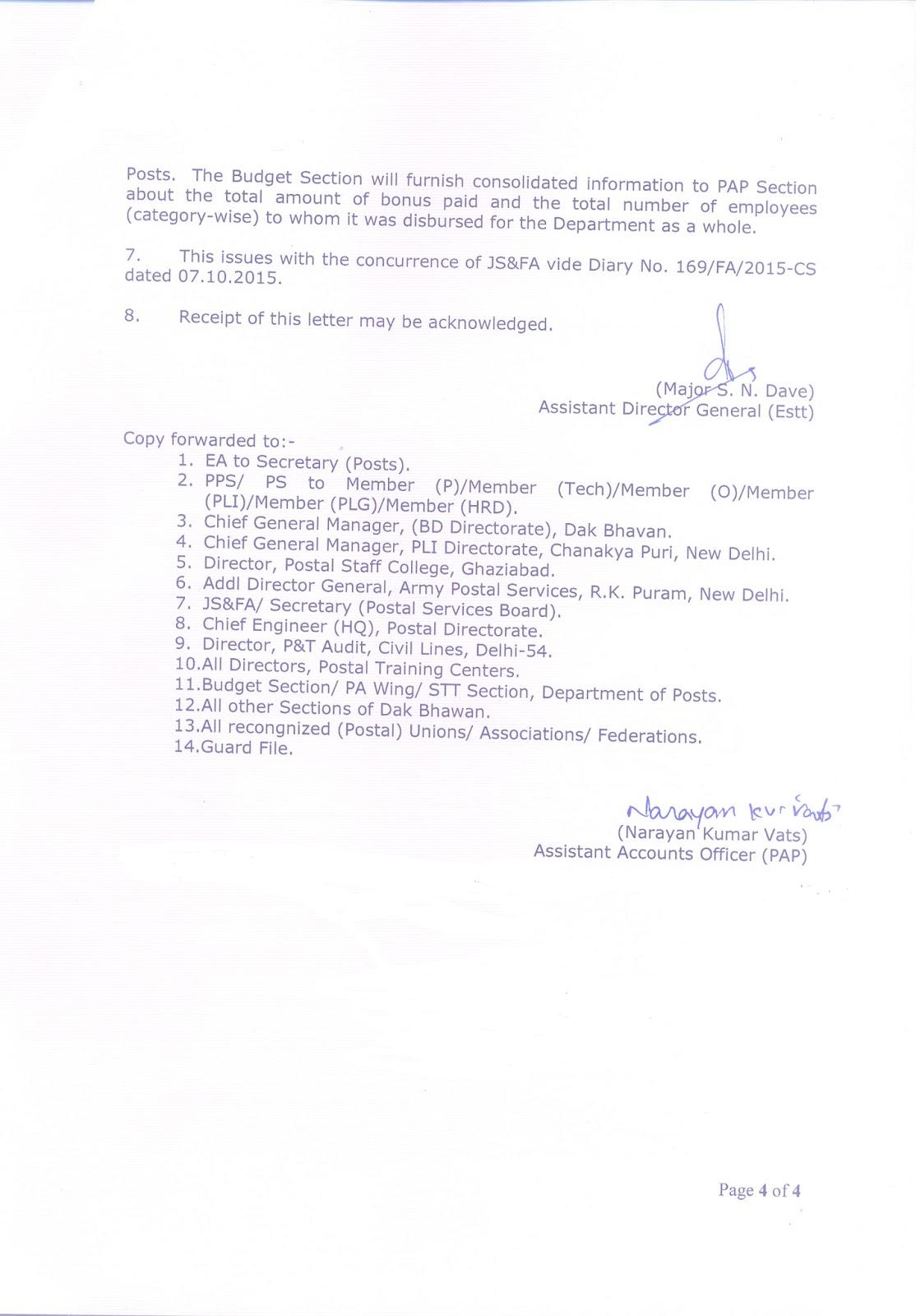 PRODUCTIVITY LINKED BONUS FOR THE YEAR 2014-2015